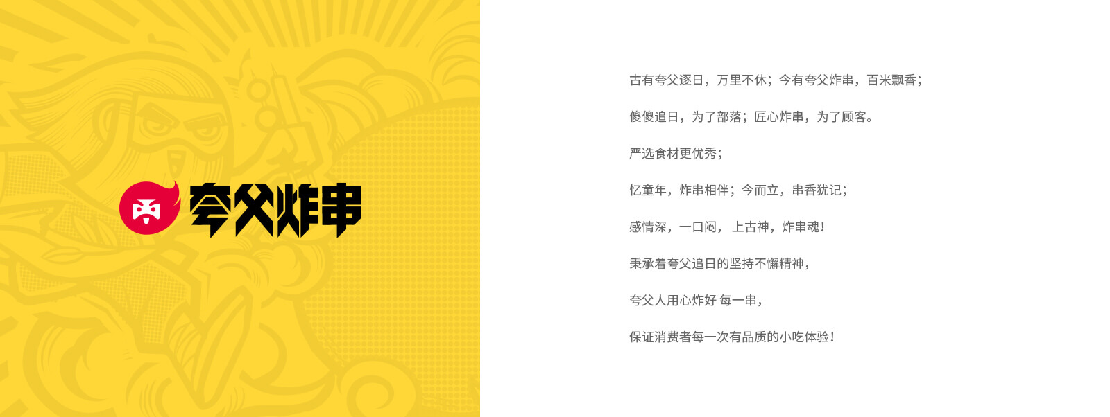 夸父炸串第二代形象店和第三代产品菜单相继面世,简约大气的设计形象正逐渐深入人心成为品牌超级符号,3.0菜单更是打造了“招牌炸串单品+街头王牌小吃+布袋馍主食”的产品模式,提升整体产品市场竞争力。