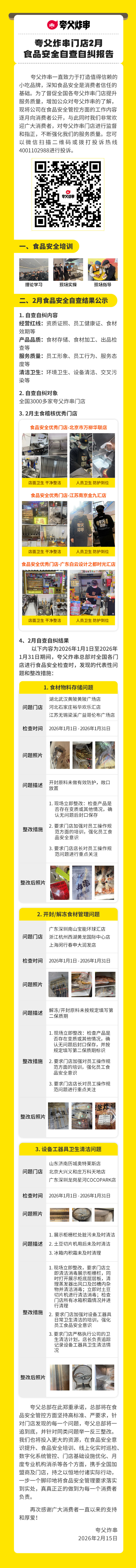 夸父炸串门店2月食品安全自查自纠报告